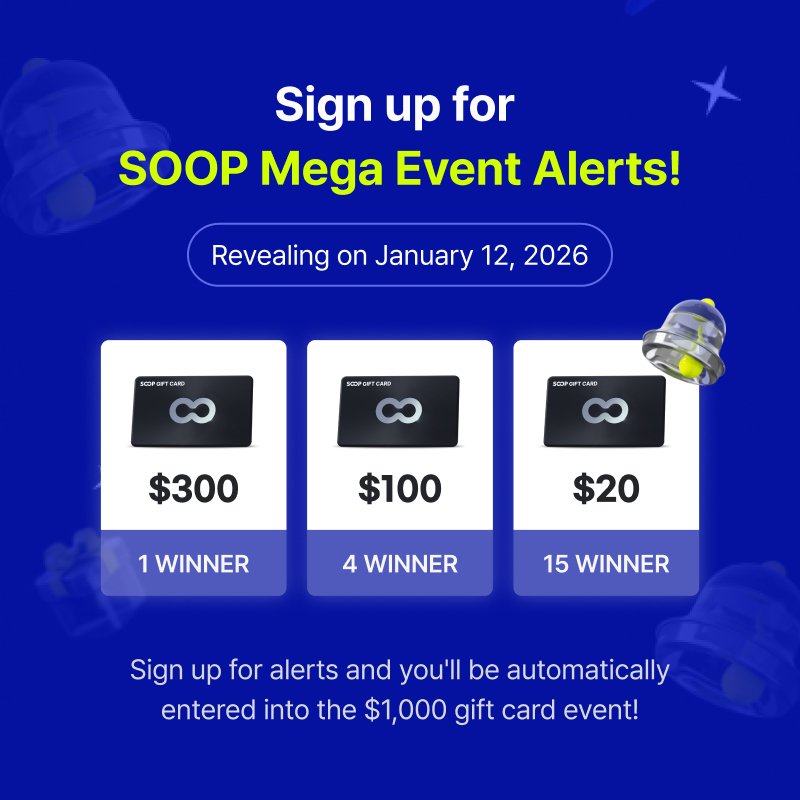 Sign up for SOOP Mega Event Alerts and join the $1,000 Gift Card Giveaway!
