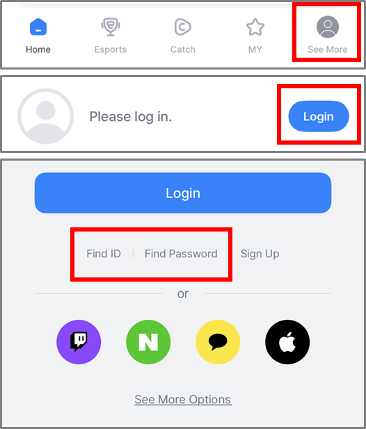 Open the SOOP app → Tap “More” (bottom right) → Tap “Login”