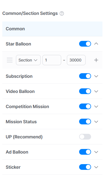 You can set up to 50 ranges. (However, Star Balloons: 100 units, Battle/Challenge Missions: 1 unit, UP (recommendation): 0 units)
