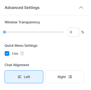 Virtual Assistant > Chat > Detailed Settings (left panel) > Change Chat Alignment