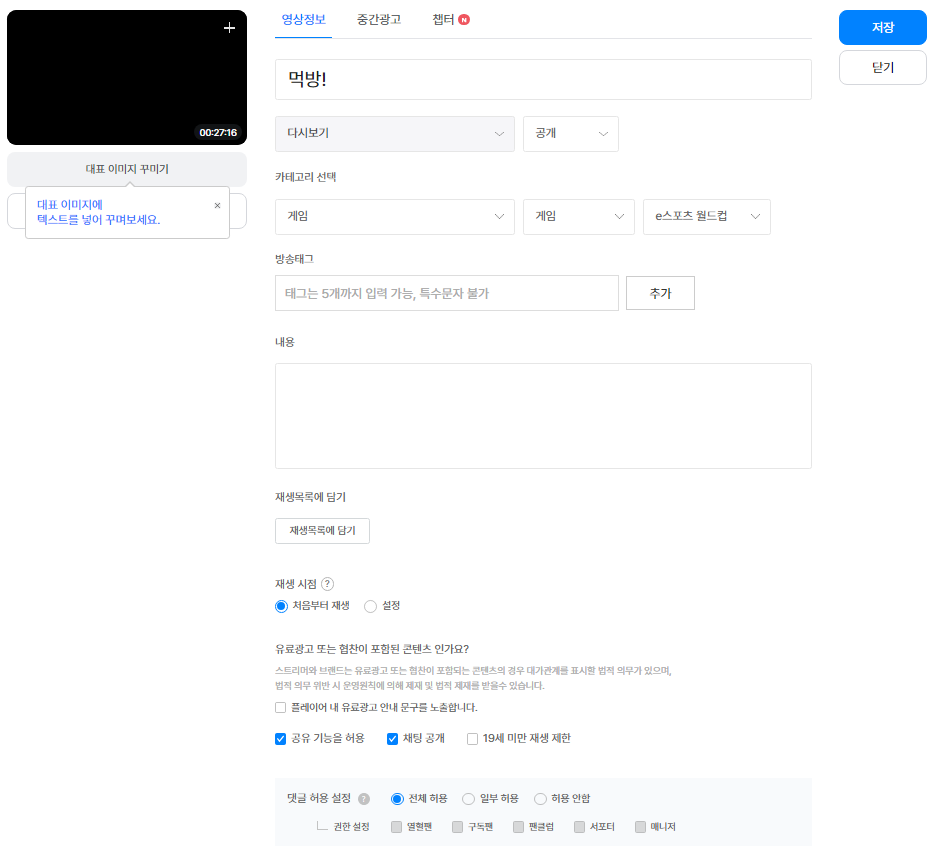 ※ Support for the mobile app VOD upload/edit page is scheduled to be updated later. - Changes to the “Paid Promotion” setting will be applied to players when viewers newly enter the stream. It will not be reflected in real time for viewers already watching.