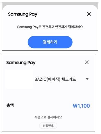 You can complete the payment using the payment methods registered in Samsung Pay by verifying with your fingerprint or password.