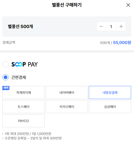 - Up to 2,000,000 KRW per transaction / 10,000,000 KRW per day