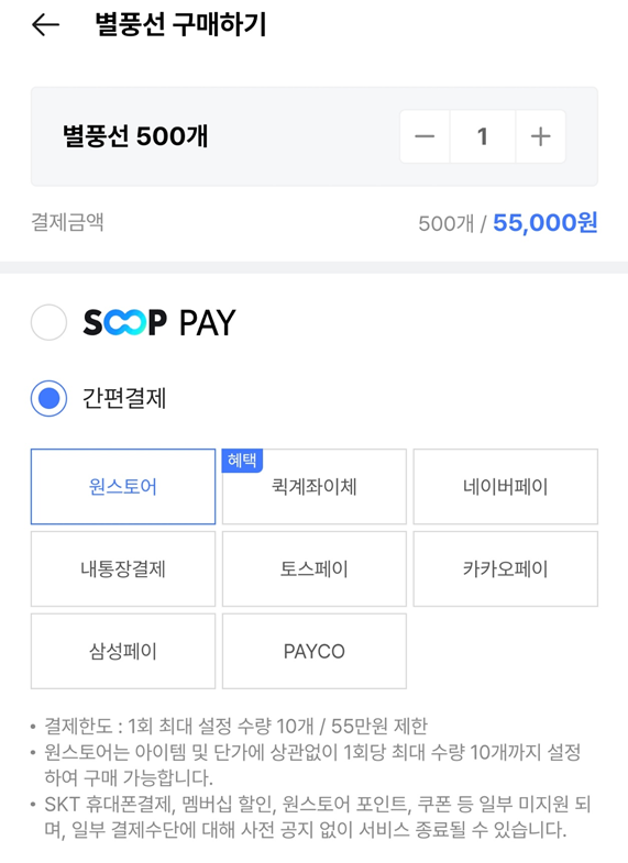 ONE Store is one of the convenient payment methods available to Android mobile users who access SOOP through ONE Store.