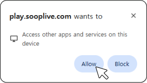 · 2) เพิ่มplay.sooplive.com ในรายการ “Allowed to access apps and services on this device”